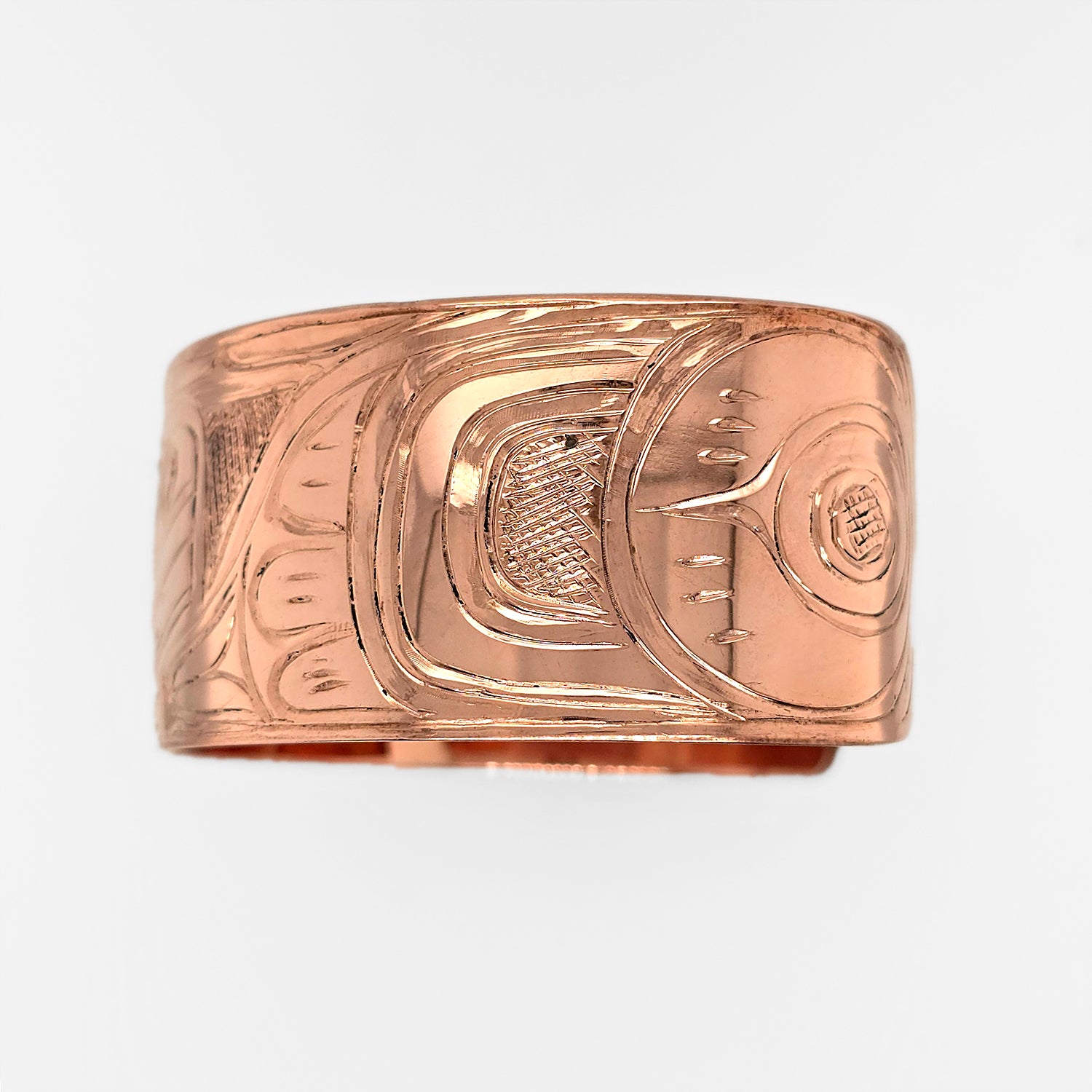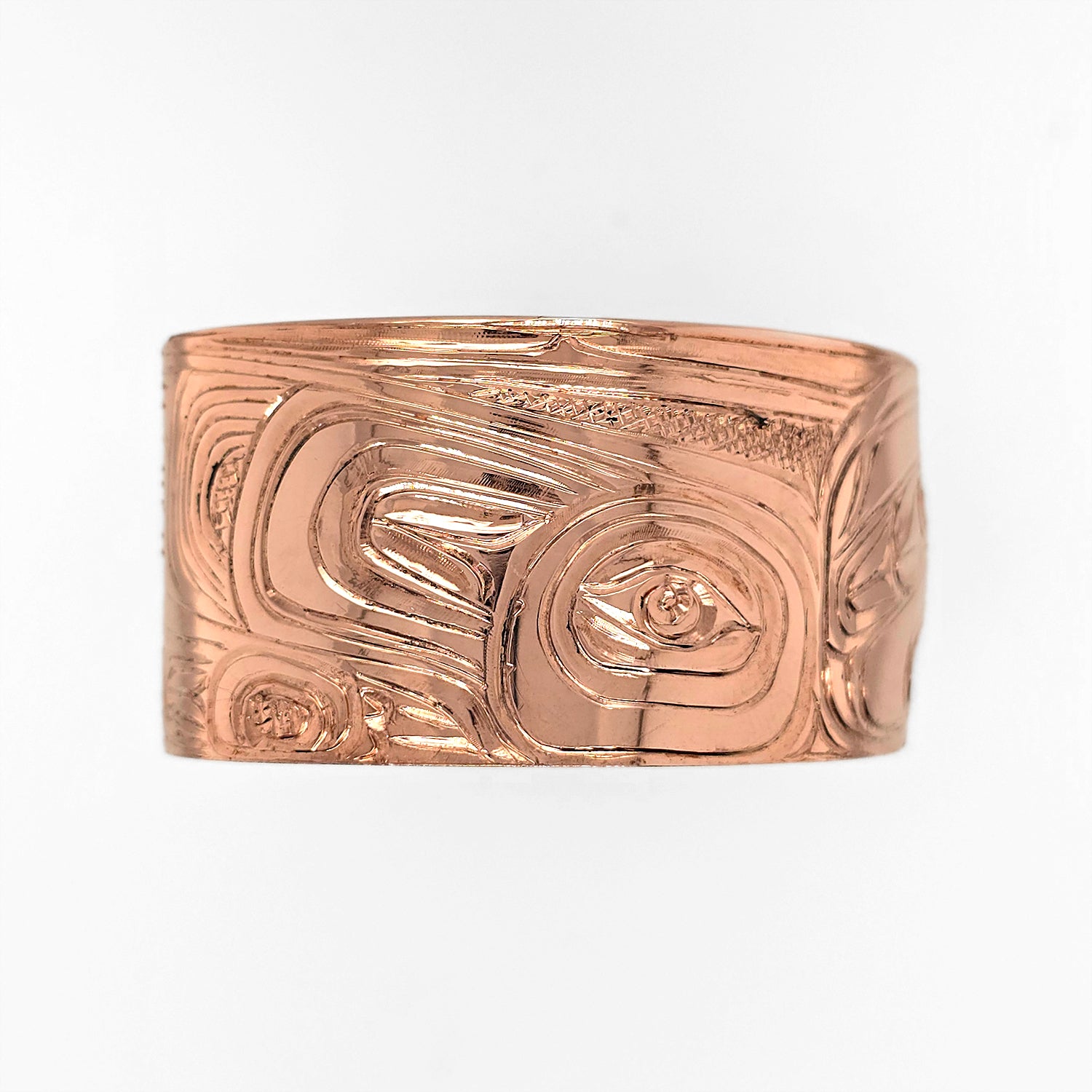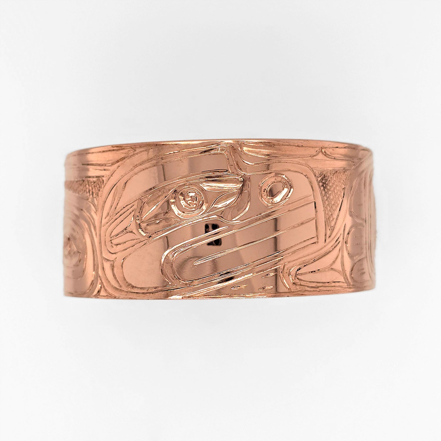 This Raven Bracelet is hand-carved in copper by Kwakwaka'wakw artist Don Wadhams.