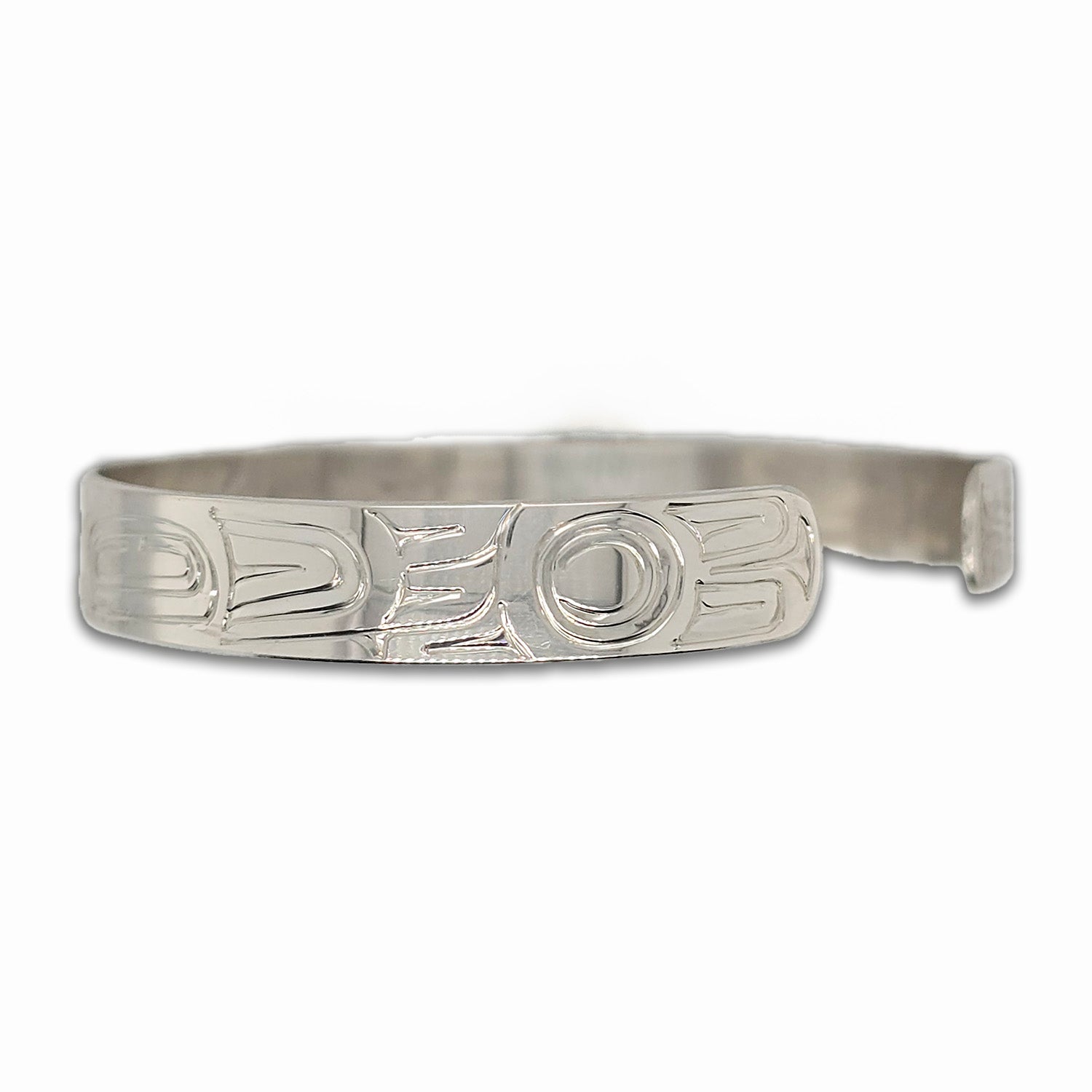 This Eagle and Raven 1/4" Bracelet is hand-carved in sterling silver by Haida artist Garner Moody.