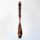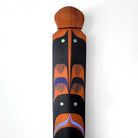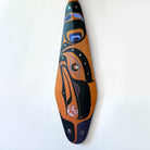 This Raven Paddle was created by Kwakwakwa'wakw artist Jessica Chickite of the We Wai Kai First Nation. It was carved in red cedar by her partner Cody Lafrance, then hand-painted with black and purple acrylic by Jessica. The paddle was then inlaid with 20 abalone shells.