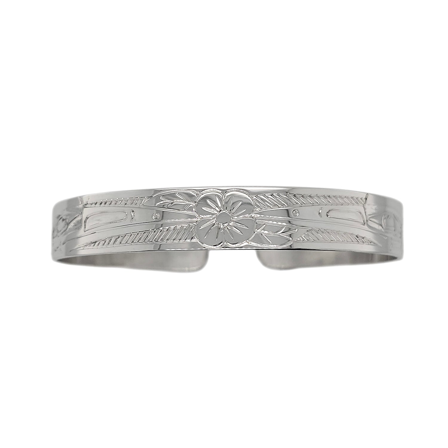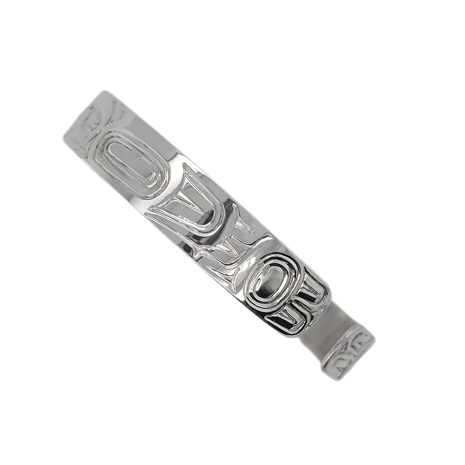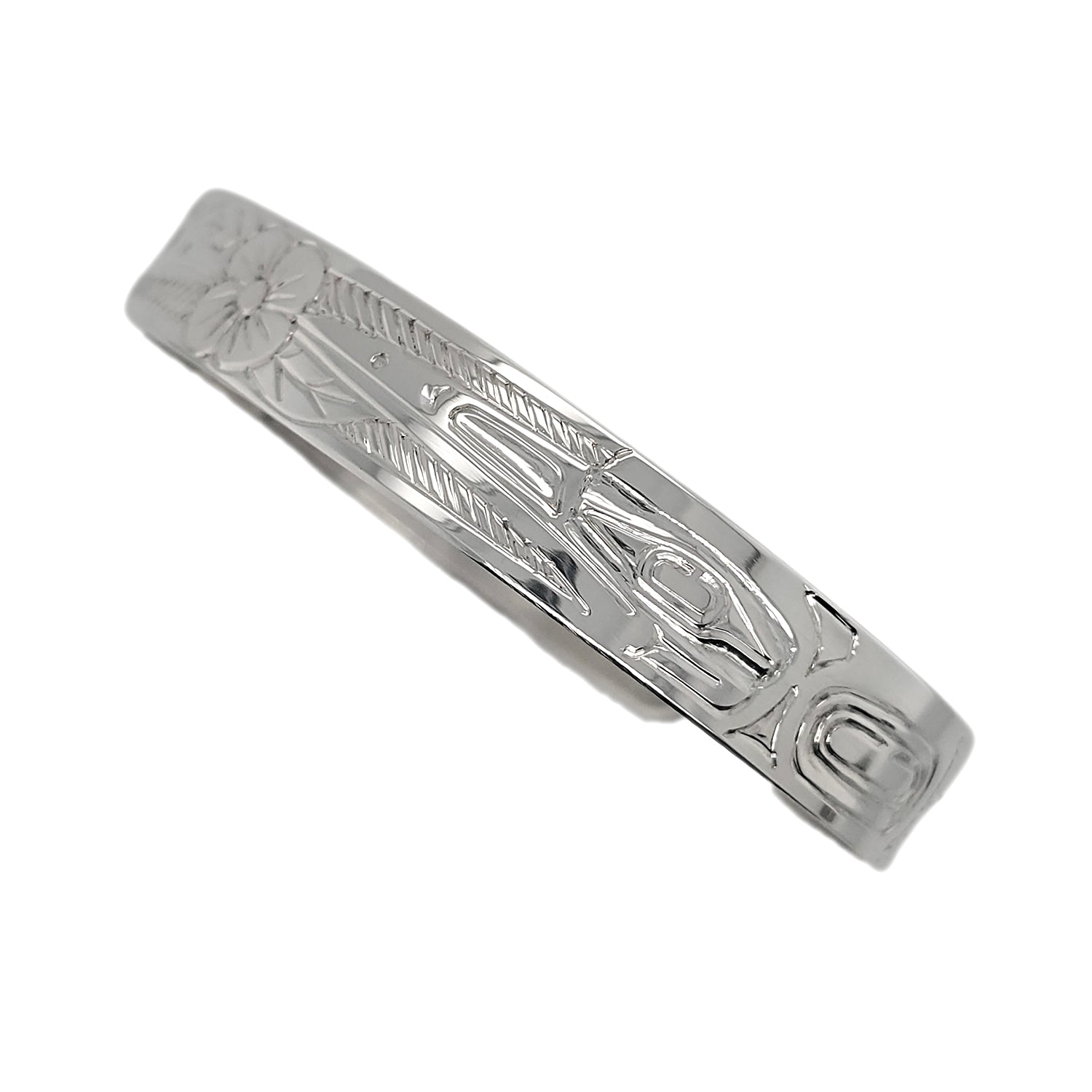 This Hummingbird 3/8" Bracelet is hand-carved in sterling silver by Haida artist Garner Moody.