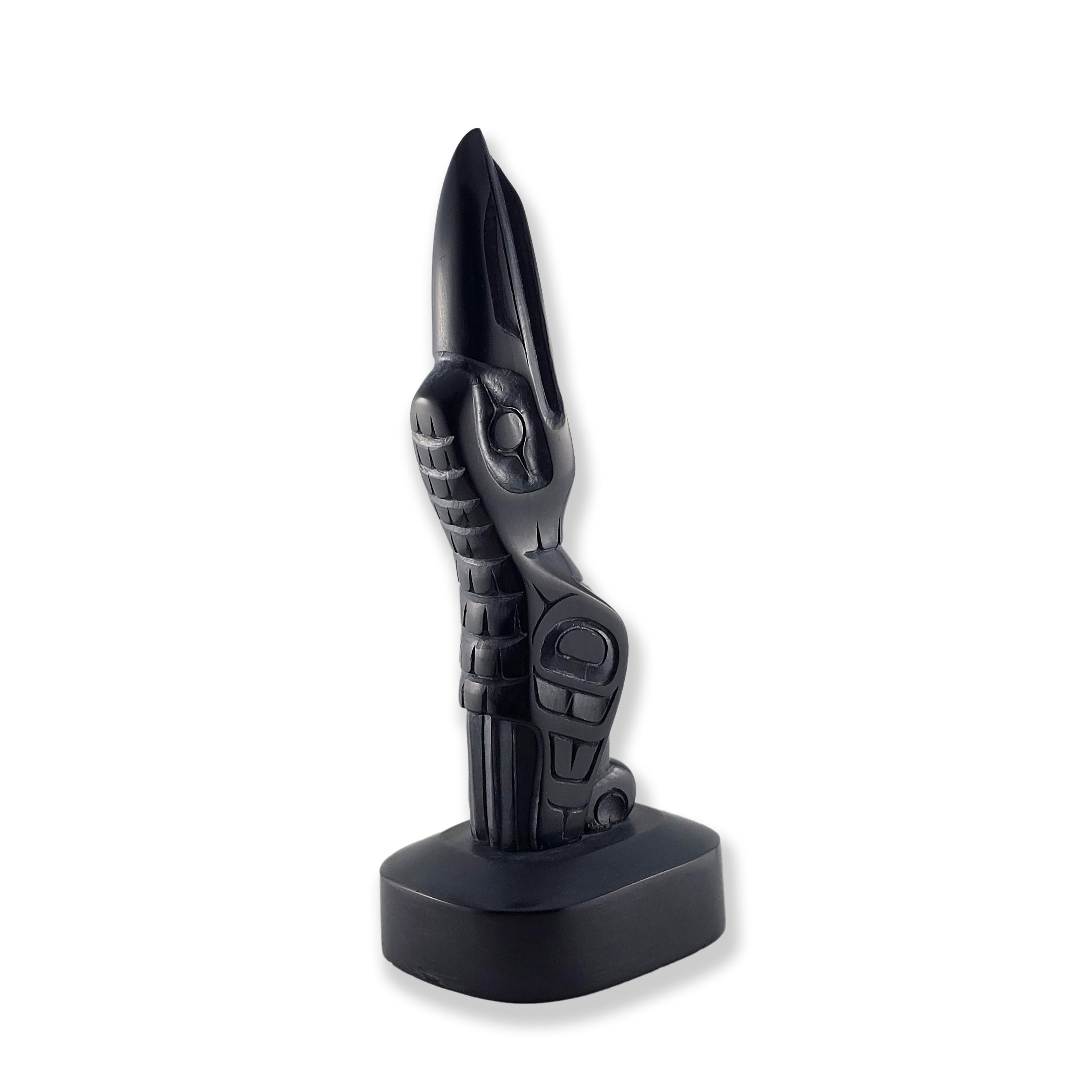 This Raven totem pole was hand-carved in argillite by Haida artist Donovan Gates. It was acquired from a collection in good condition.