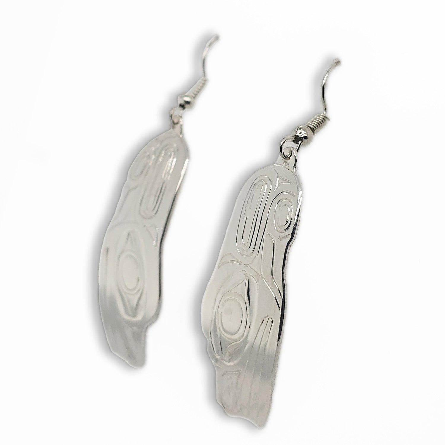These Frog Earrings are hand-carved in sterling silver by Haida artist Garner Moody.