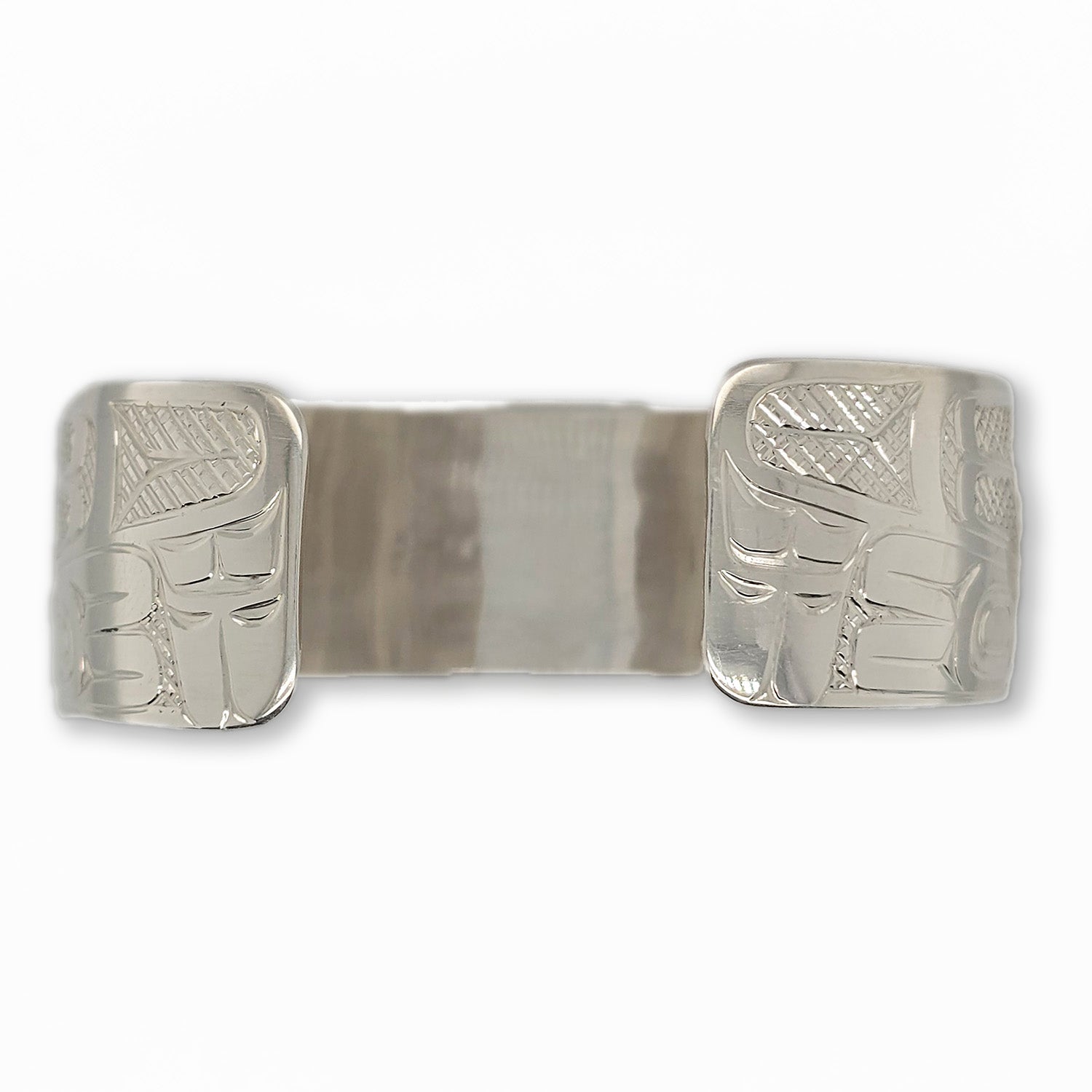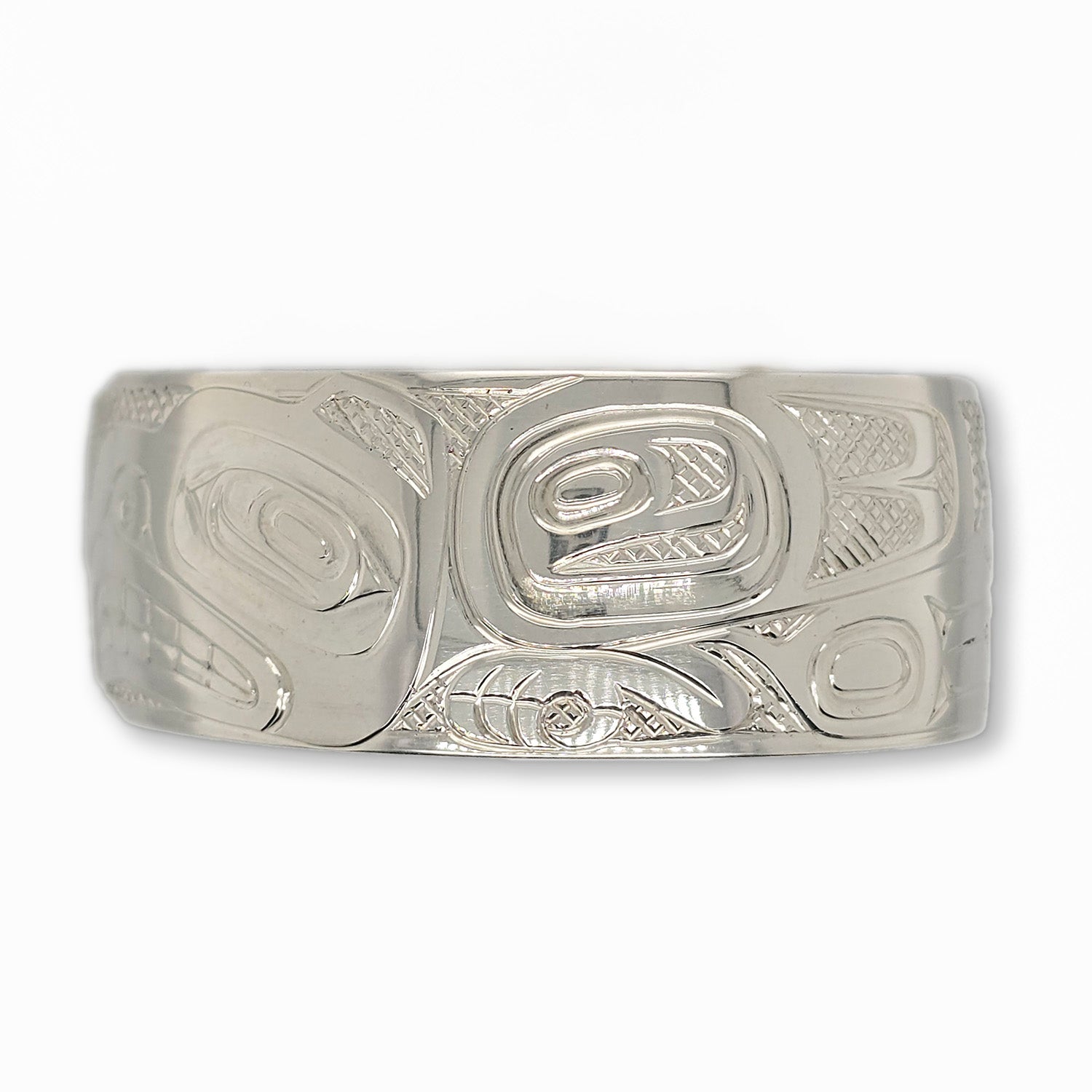 This Salte Water Eagle Silver Bracelet has been hand-carved in sterling silver by Haida artist Derek White from the Haida Nation. it is signed on the inside.