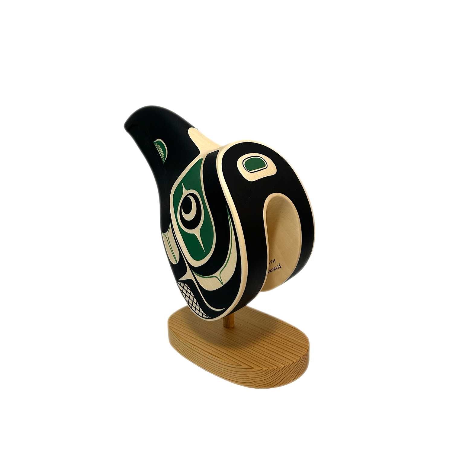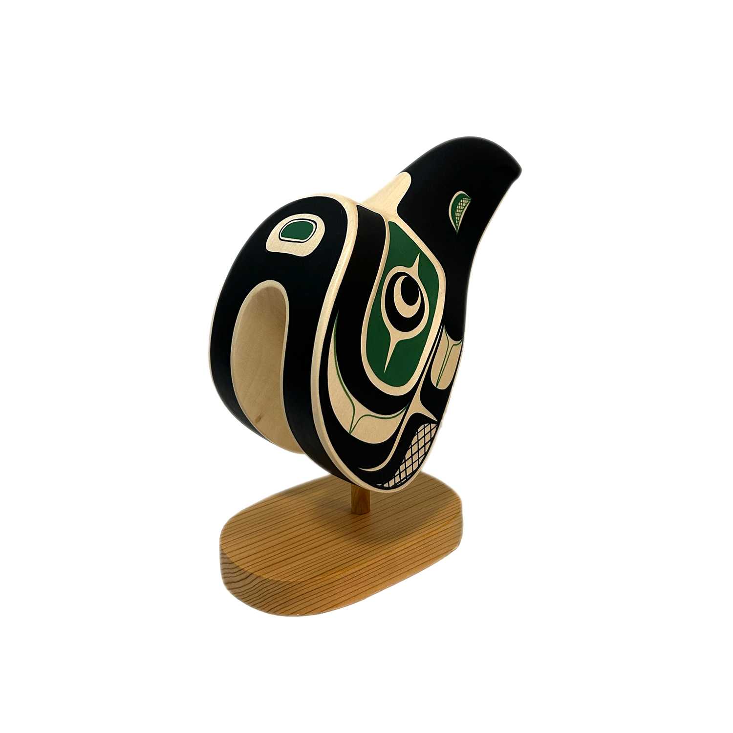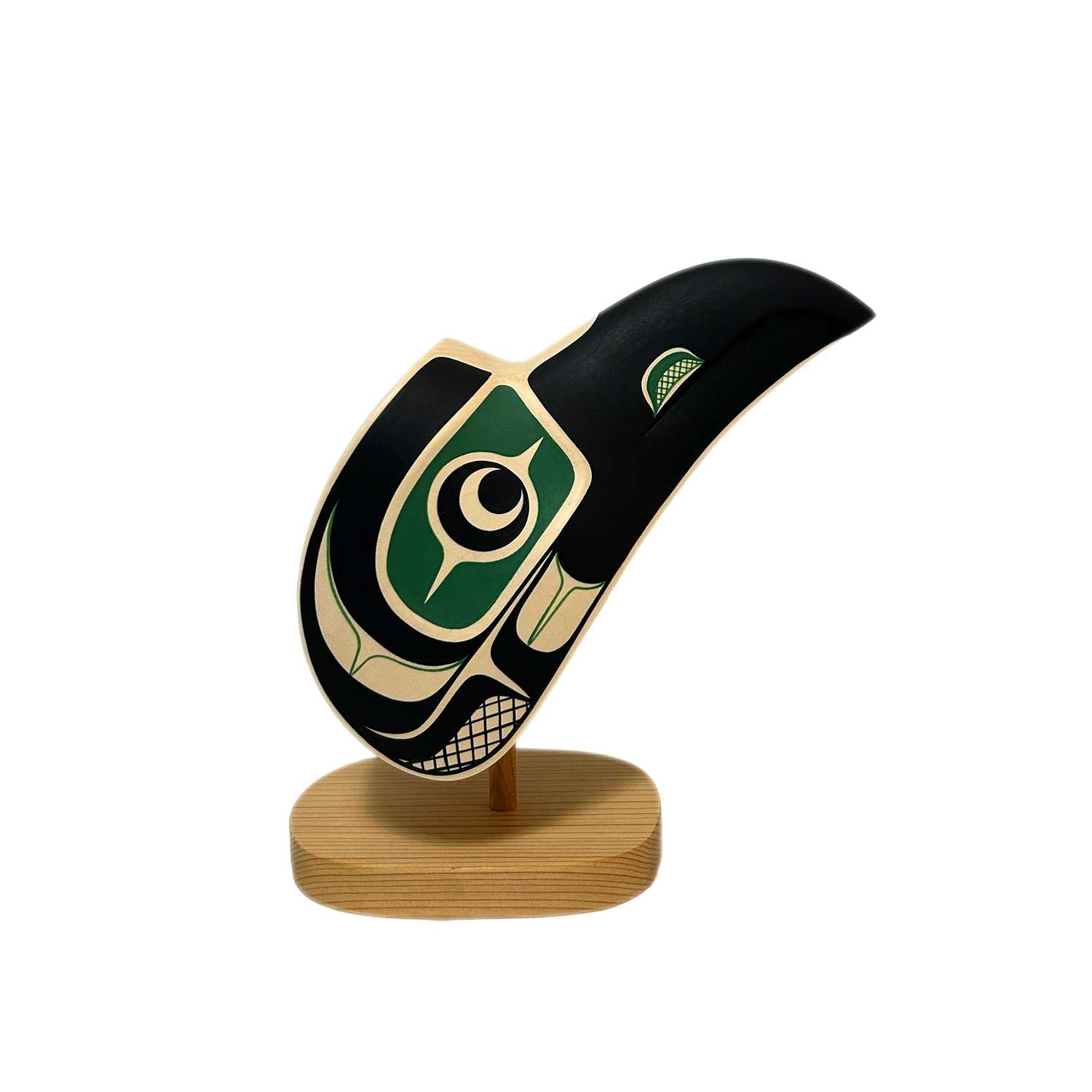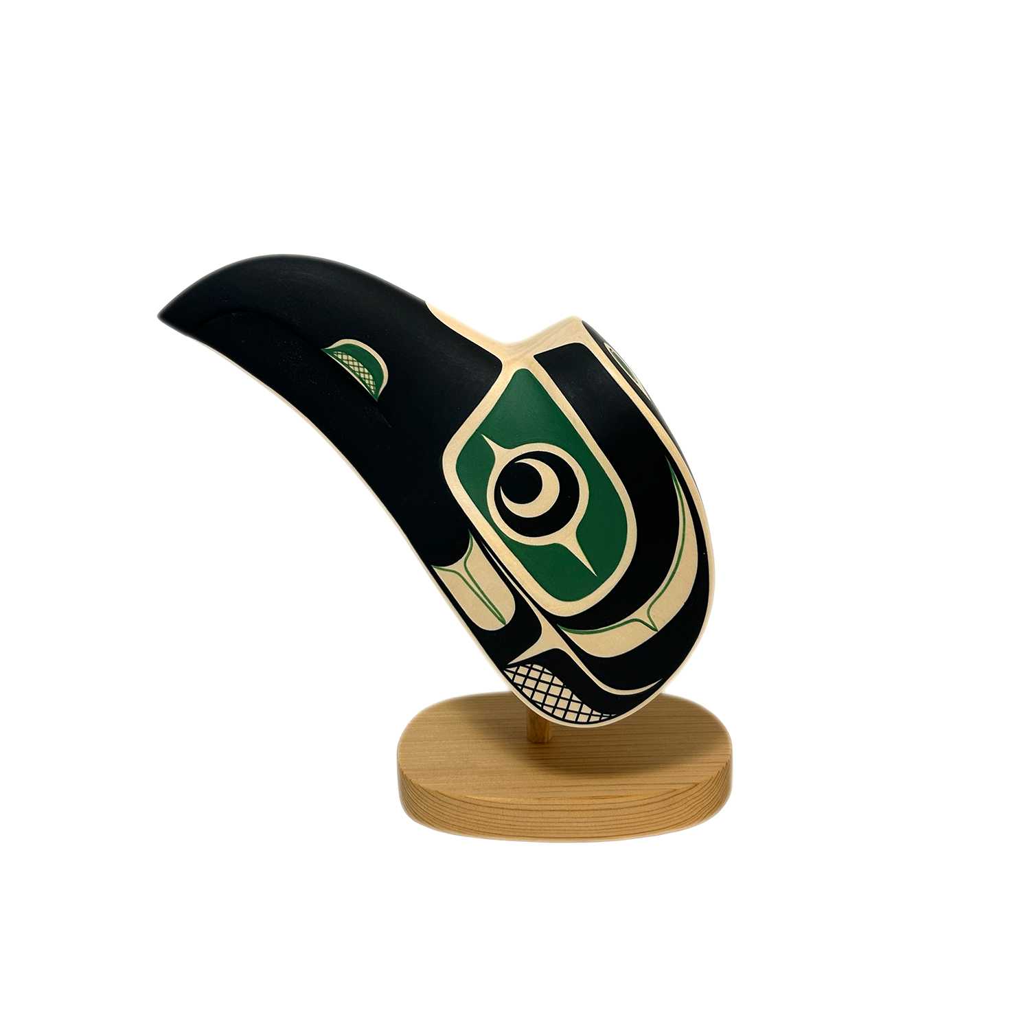 Mischievous and curious, the Raven plays many important roles in Pacific Northwest Coast Culture. For some, he symbolizes creation, transformation, knowledge, prestige as well as the complexity of nature and the subtlety of truth. He also symbolizes the unknown and shows that every person sees the world in a different way.