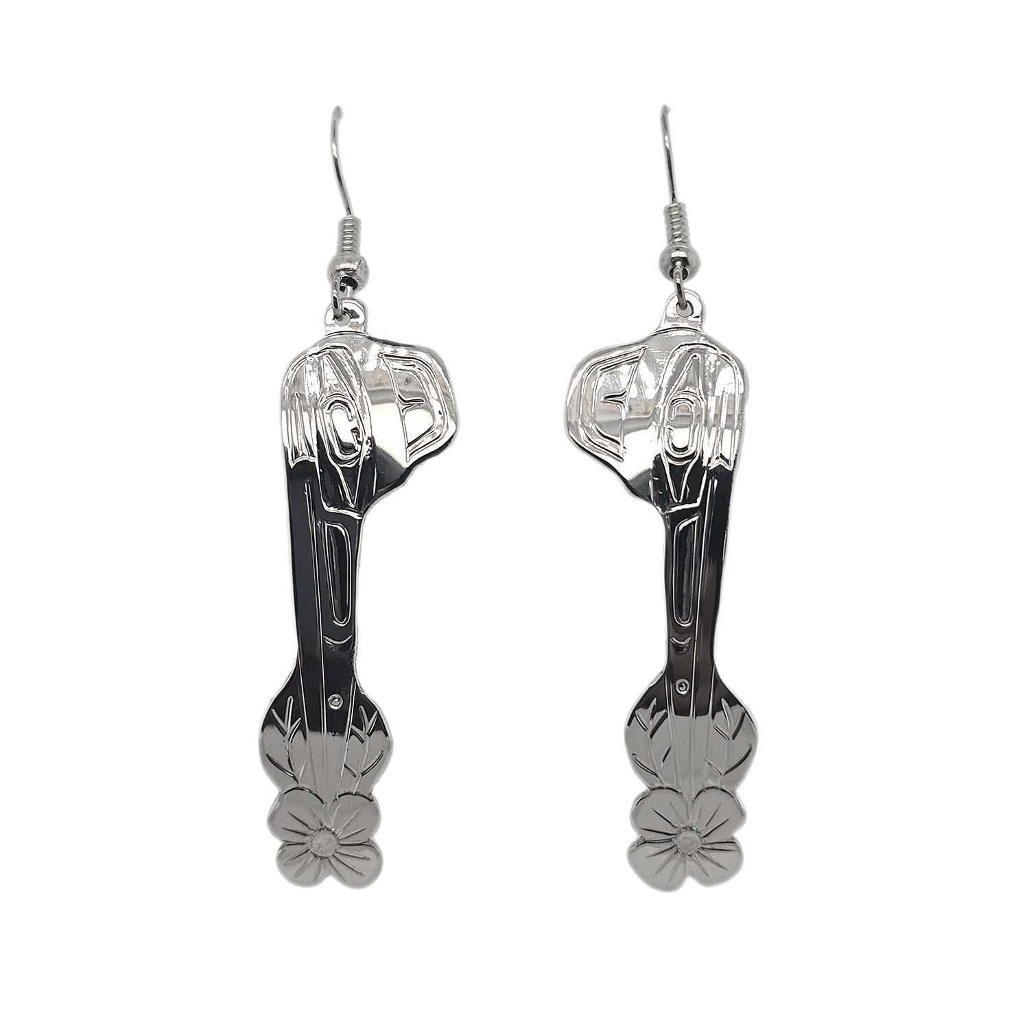 These Hummingbird Earrings are hand-carved in sterling silver by Haida artist Garner Moody.