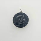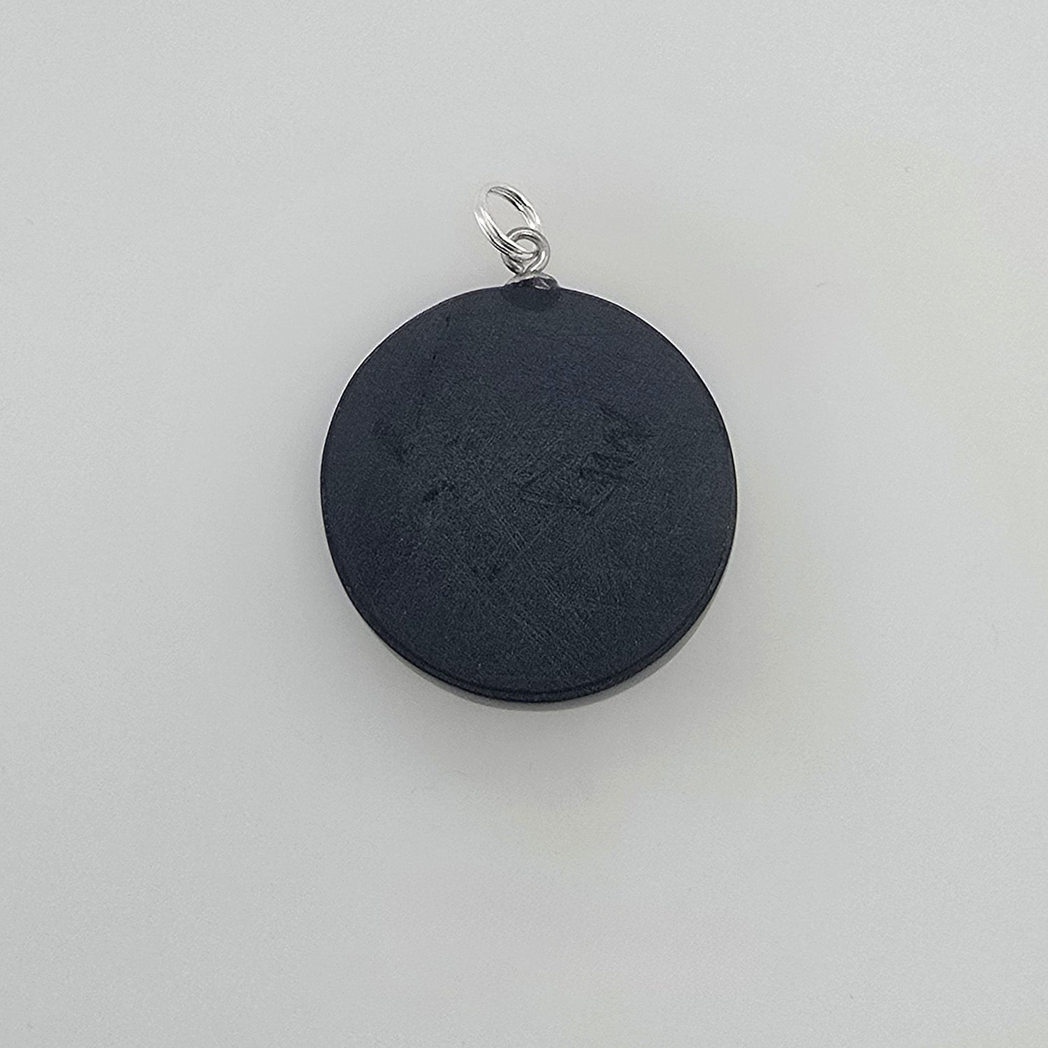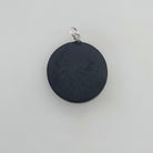 The pendant measures approximately 1 1/8 inches or 2 3/4 centimeters in diameter and 3/16 of an inch or 1/2 of a centimeter thick