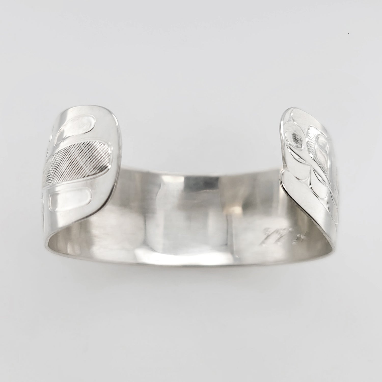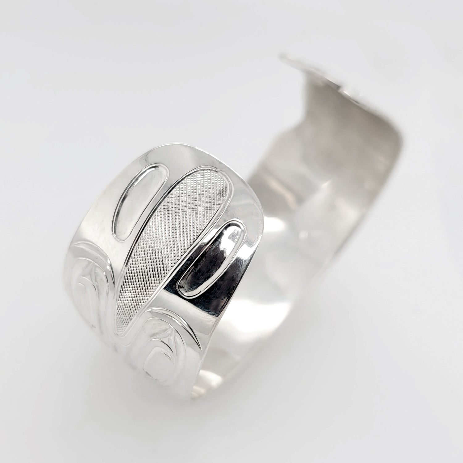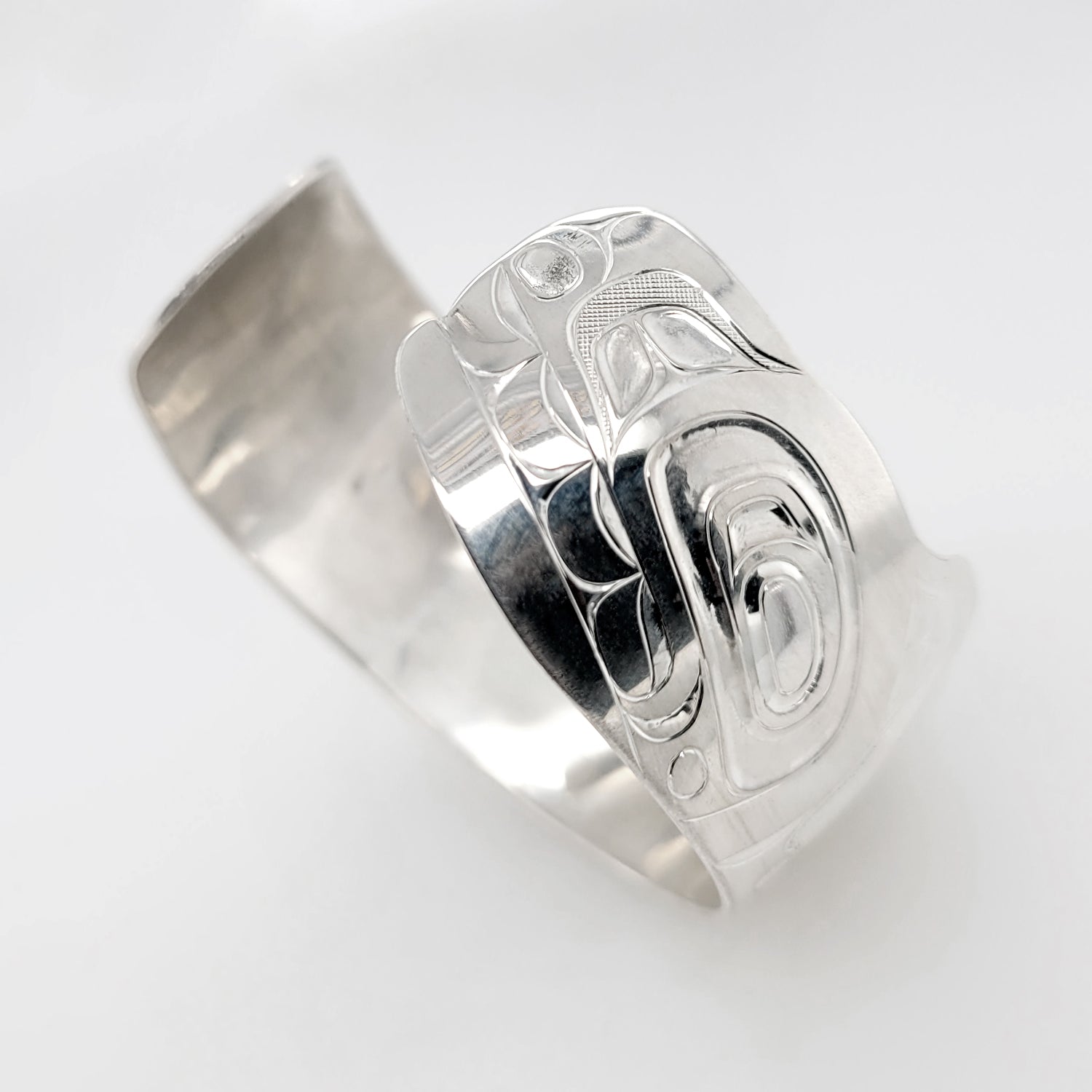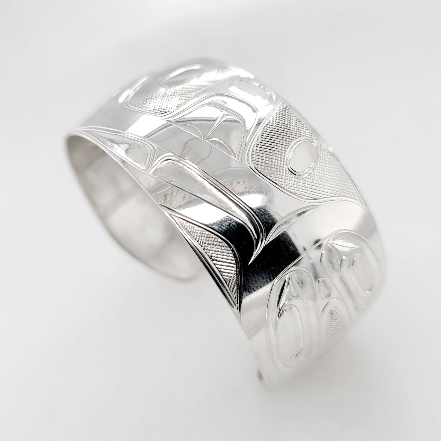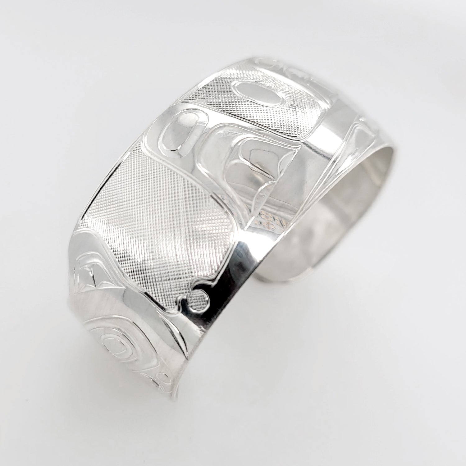 This Sea Bear bracelet is hand-carved in sterling silver by Nuxalk and Nuu-chah-nulth artist Kelly Robinson.
