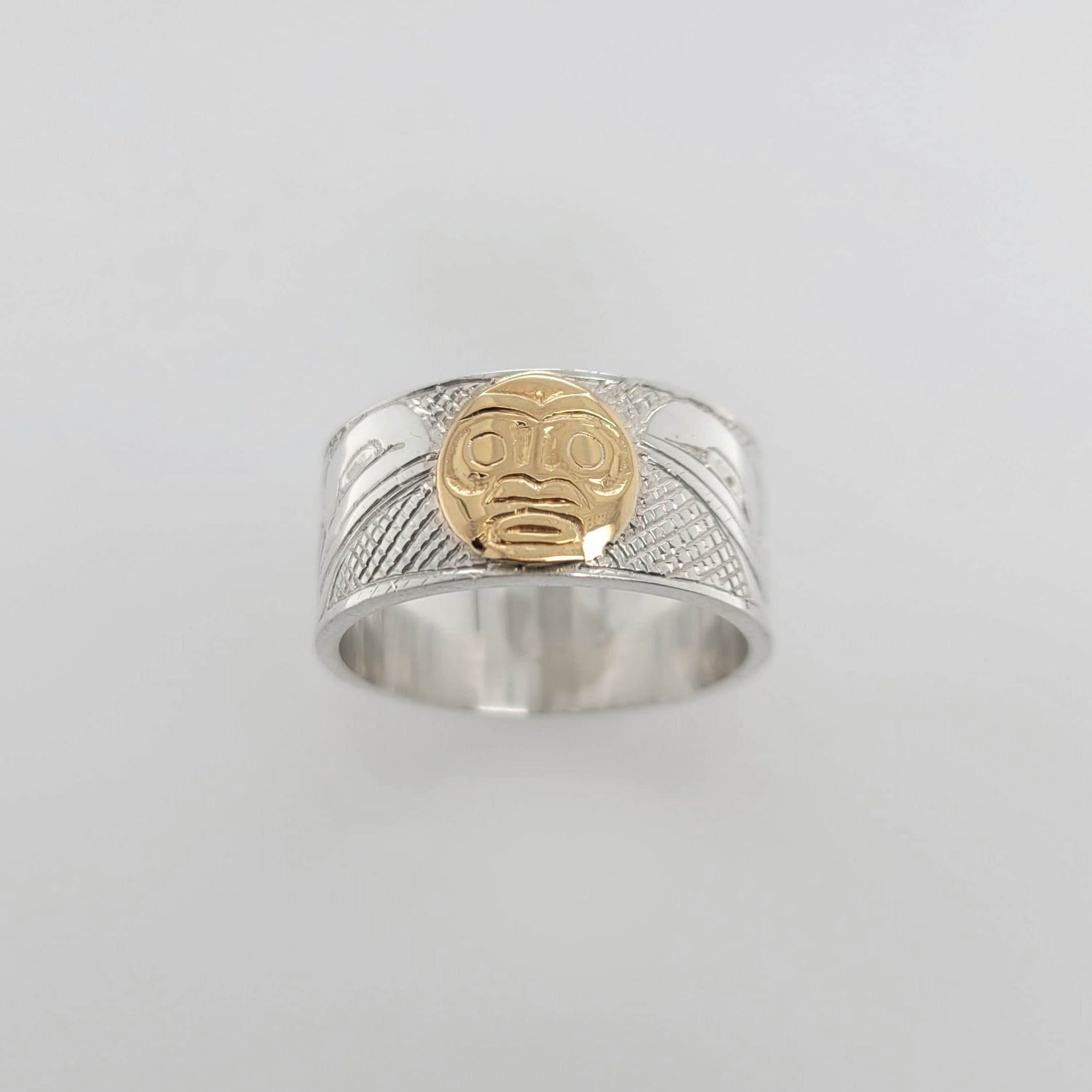 Haida artist Carmen Goertzen (T lajung nung kingaas) was born in 1963. He was raised and educated in Masset, Haida Gwaii where he succeeded Claude Davidson (the father of Robert Davidson) as the hereditary Chief of the Yahgu 7laanas Dadens Clan. He started carving as a child and became a professional carver in the nineteen-eighties. He was strongly influenced by his cousins Robert Davidson and Reg Davidson and has created his own distinct style that is sought after by many collectors and professionals. Carmen Goertzen is known and respected for his very deeply carved and traditional Haida Designs in gold, silver and other materials.