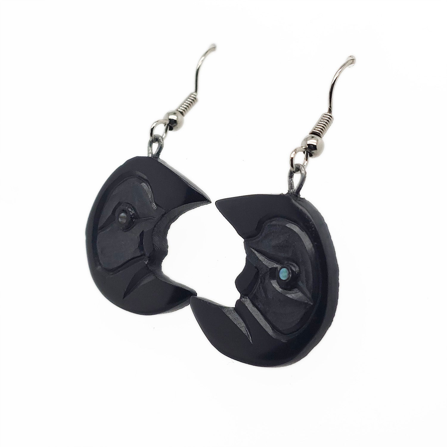 These Crescent Moon Earrings have been hand-carved by Haida artist Amy Edgars. The earrings have been carved in argillite and feature a total of 2 abalone inlays.