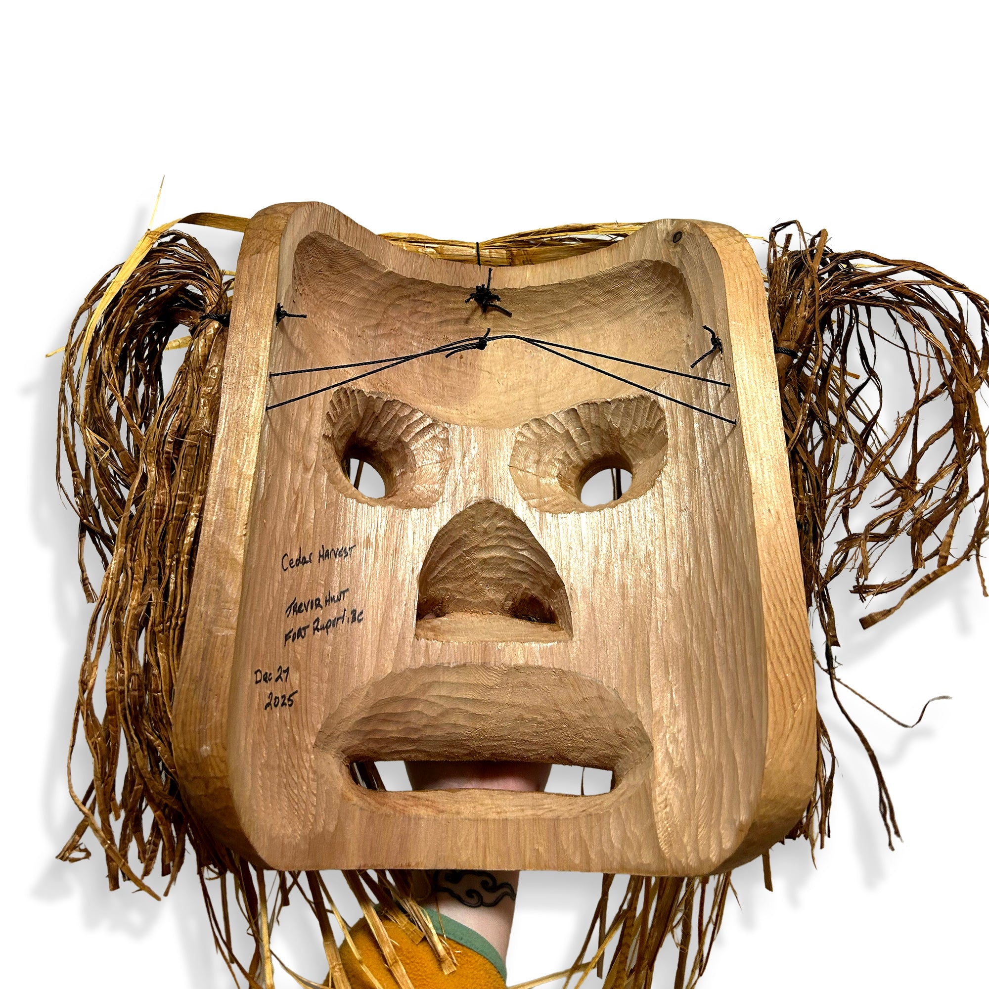 I started making cedar harvest masks, when I started harvesting my own bark from the forest. Most people just buy the bark, as it's alot of work, but I love being in nature. - Trevor Hunt