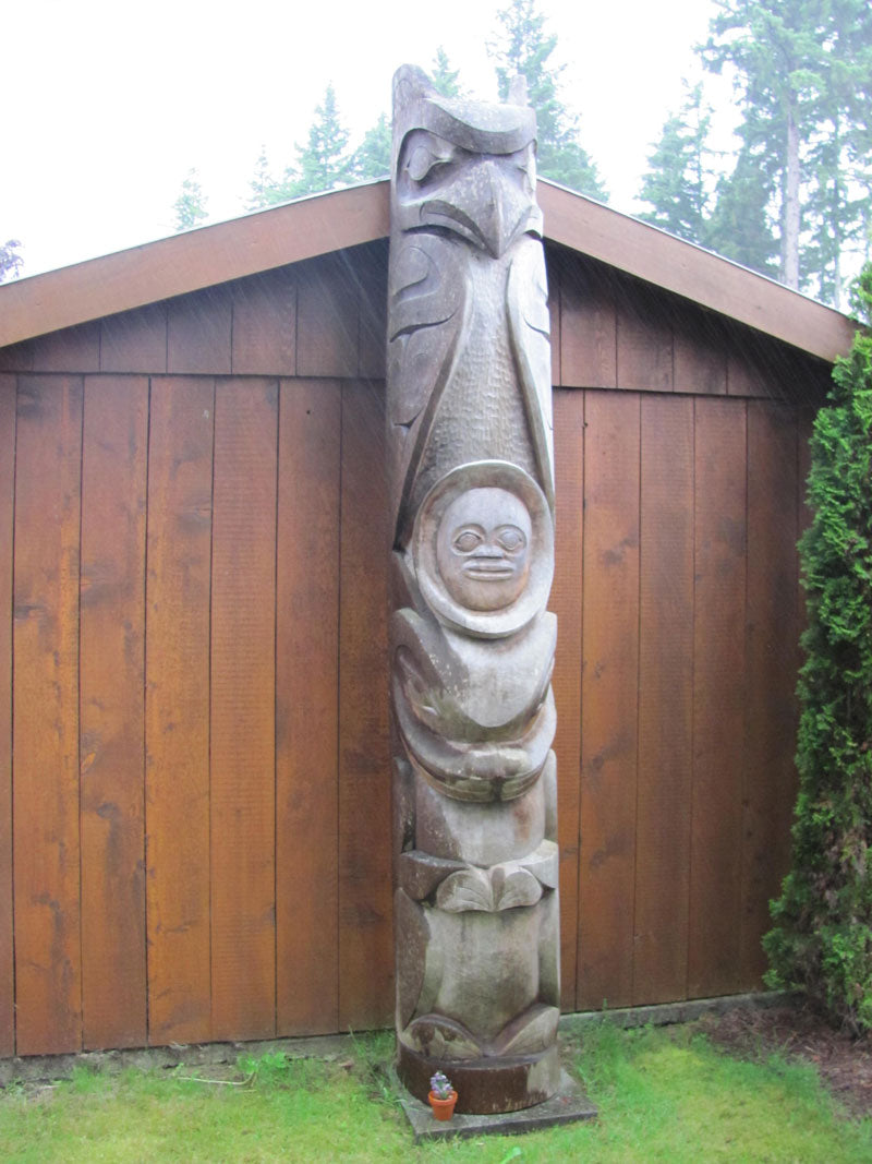 After the event Richard Krentz raised the pole at his Comox Valley Big House. In 2013 the Totem Pole was moved, raised and blessed on the property of Spirits of the West Coast Art Gallery. In 2017 it was moved and mounted onto the front of Spirits of the West Coast Art Gallery.