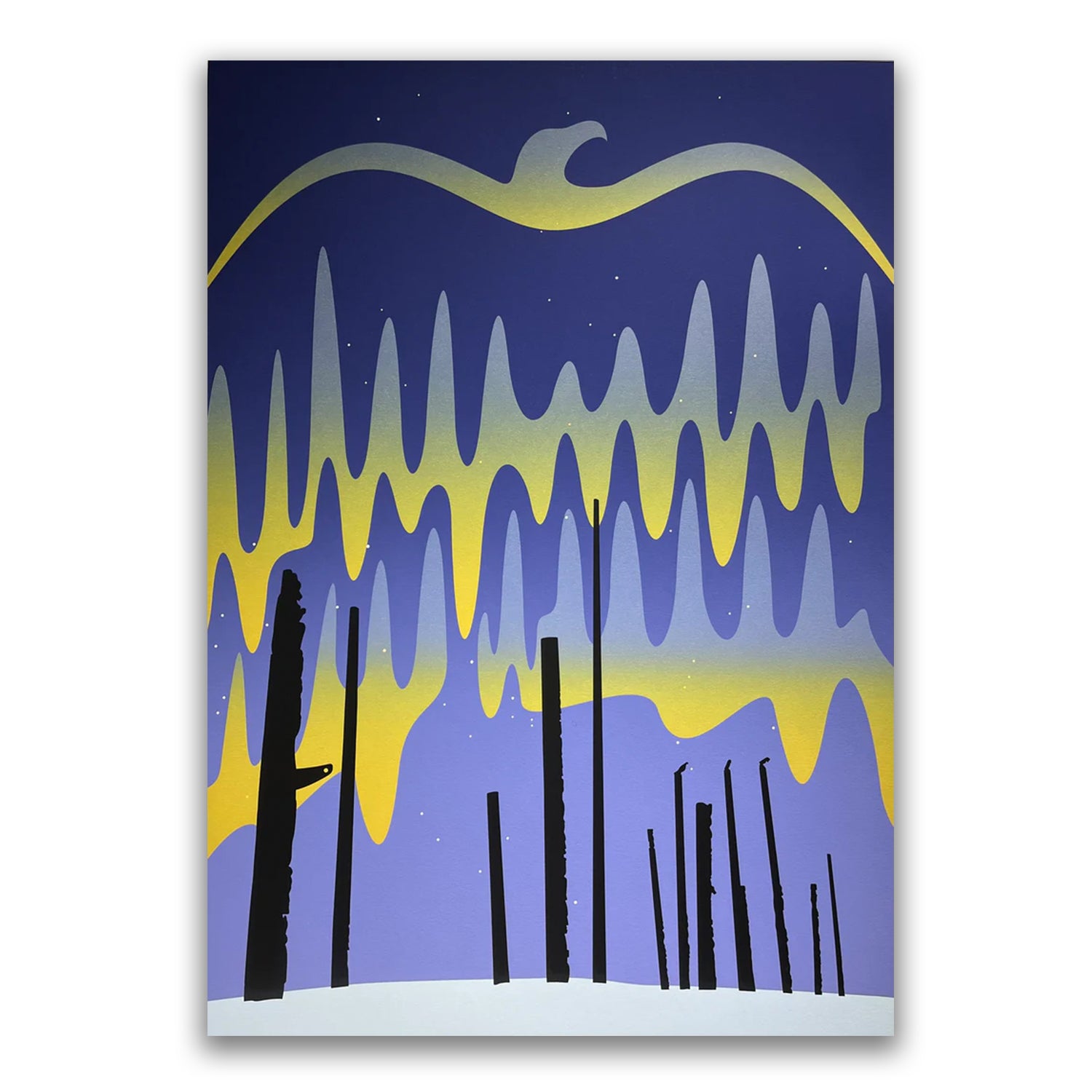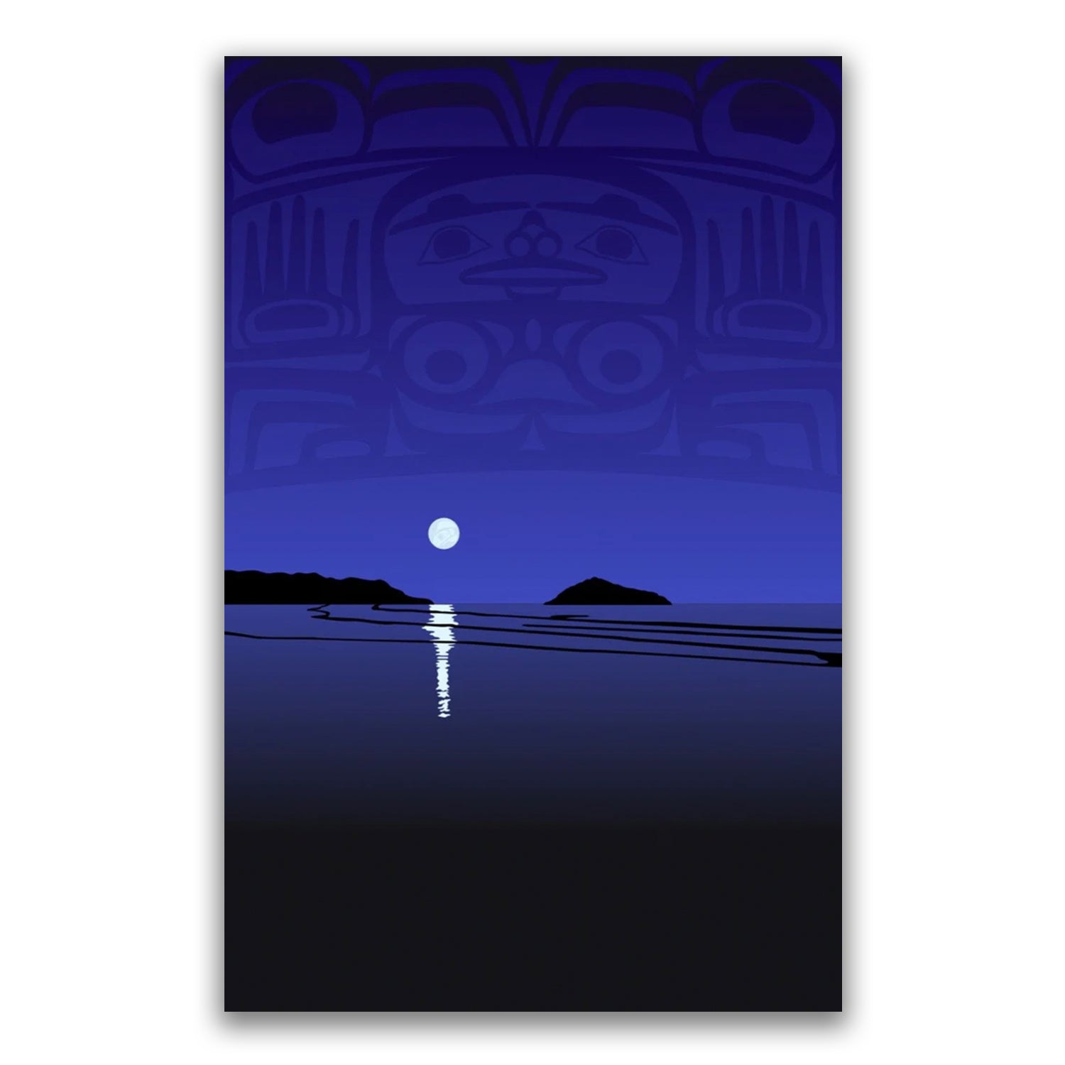 This unusual mixed heritage has had a strong influence on Roy's art. Roy studied traditional First Nations art and design at the Gitanmaax School of Northwest Coast Indian Art in Hazelton. Using these building blocks Roy, through hard work and intensive research, created his authentic and personal style of expression - a harmonious fusion of traditional and contemporary, old and new, personal and universal. In many of his pieces, Roy uses superimposed 'shadow images' that add another layer of depth, history and myth to his clear, clean images.