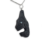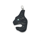 This Killer Whale Pendant is hand-carved in argillite by Haida artist Gryn White. It features one inlay of abalone in the eye.
