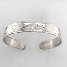 This Wolf Bracelet is hand-carved in sterling silver by Cree artist Justin Rivard.